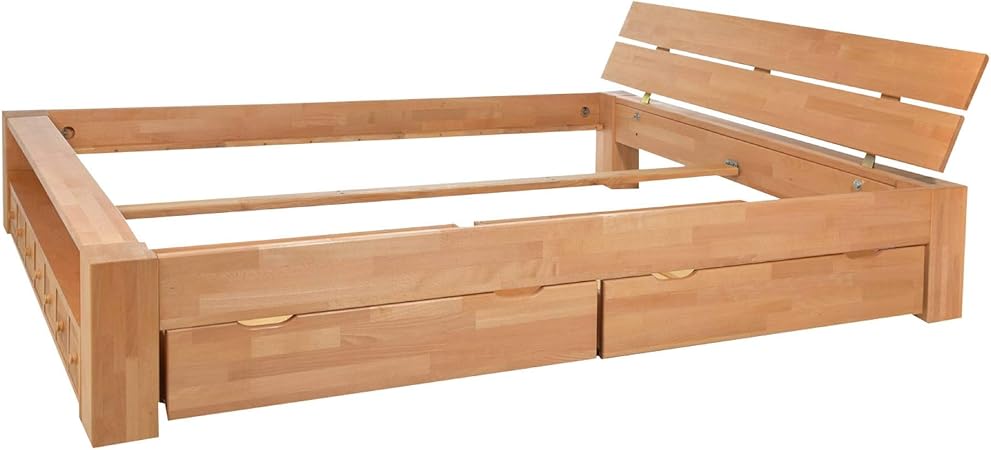 Acerto Alaska Holz Bett Aus Buche Massiv Mit Schubladen Integriertem Regal Im Kopfteil 160x200 Cm Amazon De Kuche Haushalt